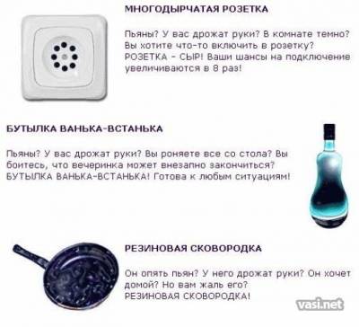 | - Здравствуйте, а можно дорожку заказать? Что значит сколько грамм? А... это не боулинг? Извините. -------------------------------------------------------------- - Ты вчера напился. - угу. Я это отчетливо чувствую сегодня. Будет сканадал? - Не будет. Вчера был. - Да? (огорченно) Перескажи вкратце, а то я не очень помню. - Я тебе рассказывала о культуре потребления алкоголя в довольно резких выражениях. - Да? А я чего? - А ты курил, слушал молча, а потом и говоришь «Милая, я второй раз женат, и , судя по твоей манере разговора, чувствую - не в последний»... - хыыыы. А ты чего? - А чего я? Заткнулась...